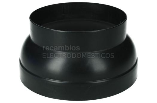 Conducto de salida para campanas extractoras Teka. Componente reductor circular con entrada de 150 mm y salida de 120 mm, creado para acoplar el conducto de evacuación entre dos medidas diferentes. Dispone de un formato rígido y un diseño cónico con un extremo de mayor diámetro y otro más estrecho.