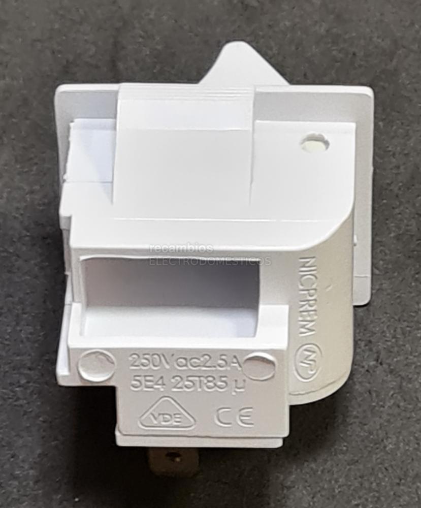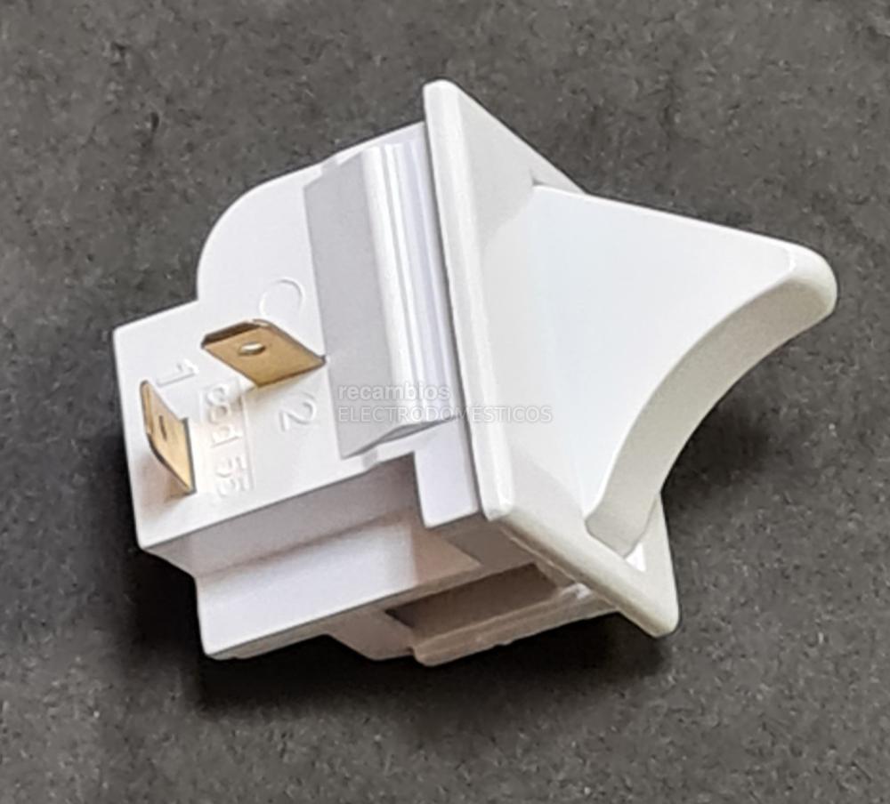 Interruptor de iluminación interior compatible con frigoríficos Teka y Beko. Este pulsador actúa al abrir y cerrar la puerta, activando o desactivando la luz interna del electrodoméstico.