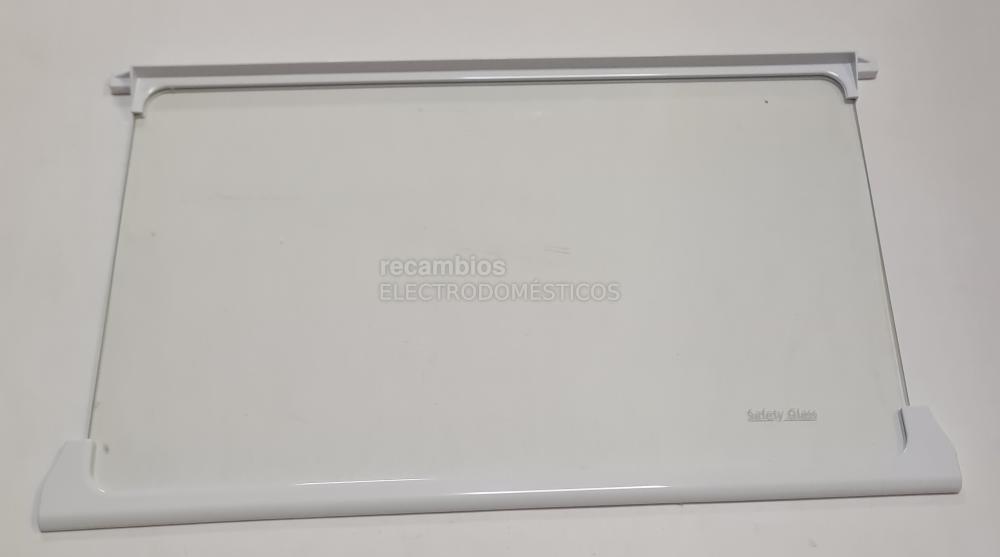 Estante interior de cristal Safety Glass compatible con frigoríficos y congeladores Beko. Compuesto por un panel de vidrio transparente con perfiles blancos en la zona delantera y posterior. Pensado como balda interna para colocar y sujetar alimentos y recipientes en el interior del electrodoméstico.