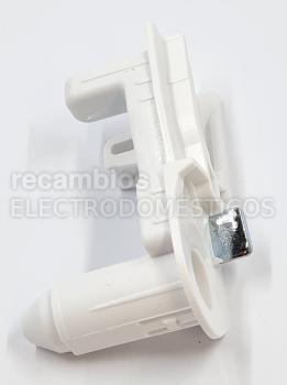 Es el soporte que sostiene el eje de la bisagra en la parte baja de la puerta lado izquierdo.
