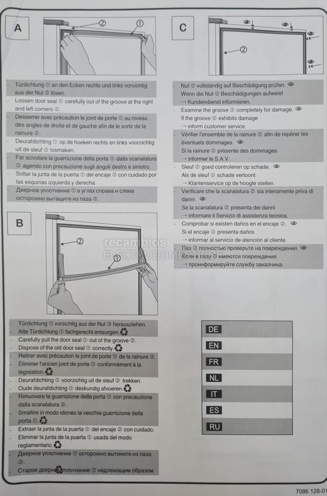 Queremos informarle que las pequeñas deformaciones en la junta o burlete de la puerta son comunes y no afectan su funcionamiento adecuado. Sin embargo, le recomendamos enderezarla antes de colocarla en el aparato. Puede hacer esto calentando la junta con un secador de pelo o agua caliente, y luego ajustando su forma manualmente.