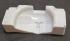 Está fabricada en plástico blanco, con diseño alargado, poca profundidad y forma rectangular. Sus bordes son ligeramente elevados para reducir el riesgo de derrames.