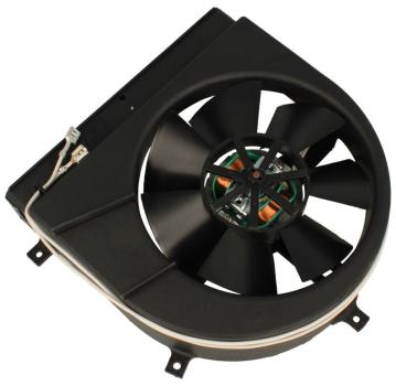 Motor de refrigeración centrífugo de 18W para hornos Teka. Se trata de un ventilador tangencial con estructura cilíndrica y soporte metálico. Pieza destinada a la función de enfriamiento del horno.