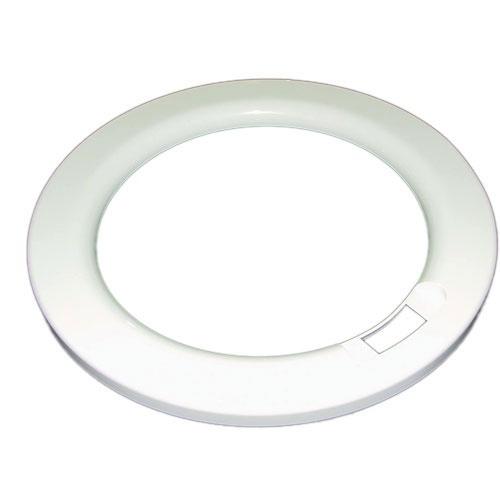 Marco exterior de escotilla para aparato de lavado y secado Brandt, Fagor, Aspes y Edesa. Pertenece a la puerta del electrodoméstico y presenta formato circular con frontal liso. Acabado en color blanco.