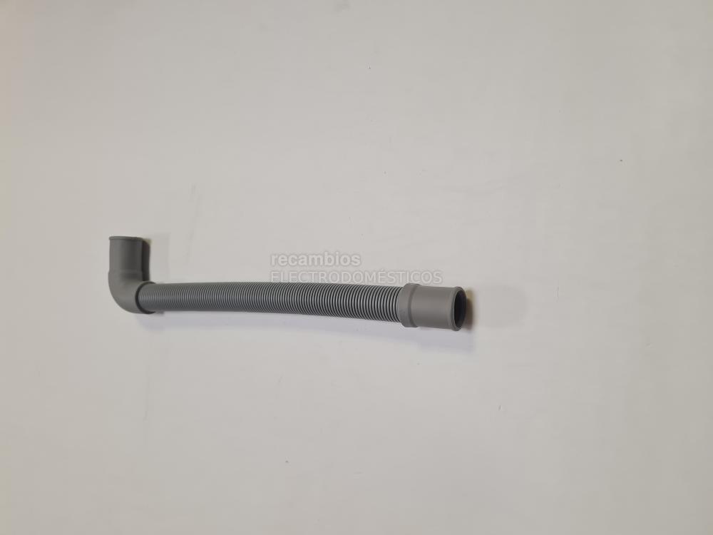Manguera de desagüe para lavavajillas con formato curvado y acabado gris.
