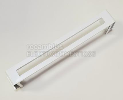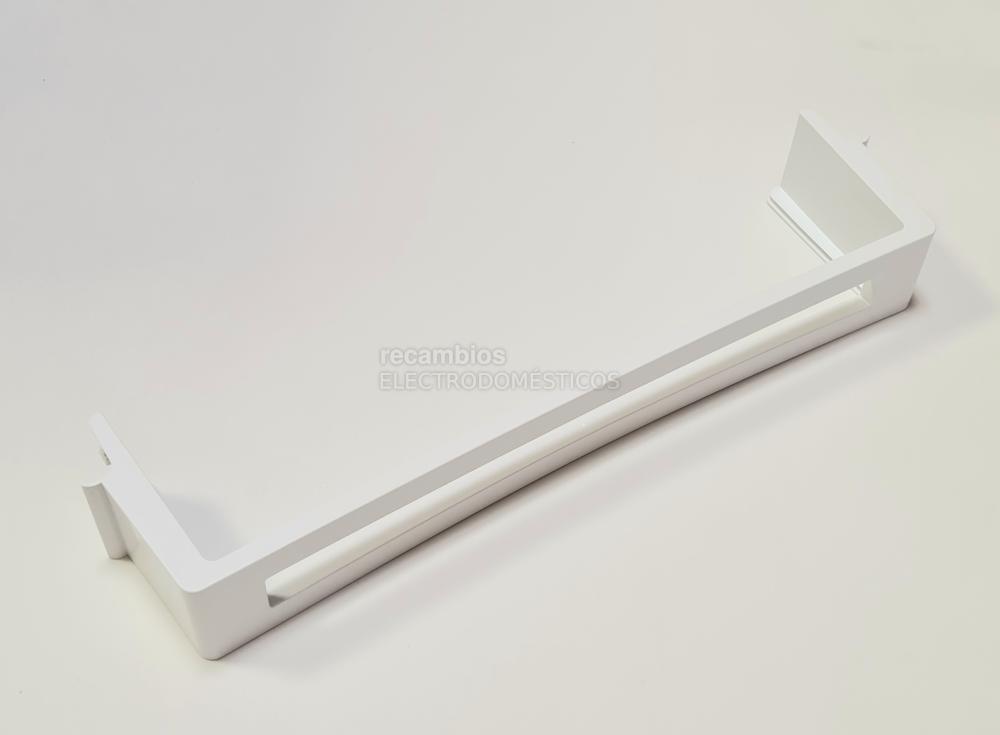 El soporte del estante intermedio de la puerta es la pieza que, conjuntamente con la base de cristal, conforman el estante intermedio/superior de puerta de frigorífico, generalmente utilizado para colocar productos o envases de menor altura, tipo mantequillas, huevos, botes o latas de refrescos.