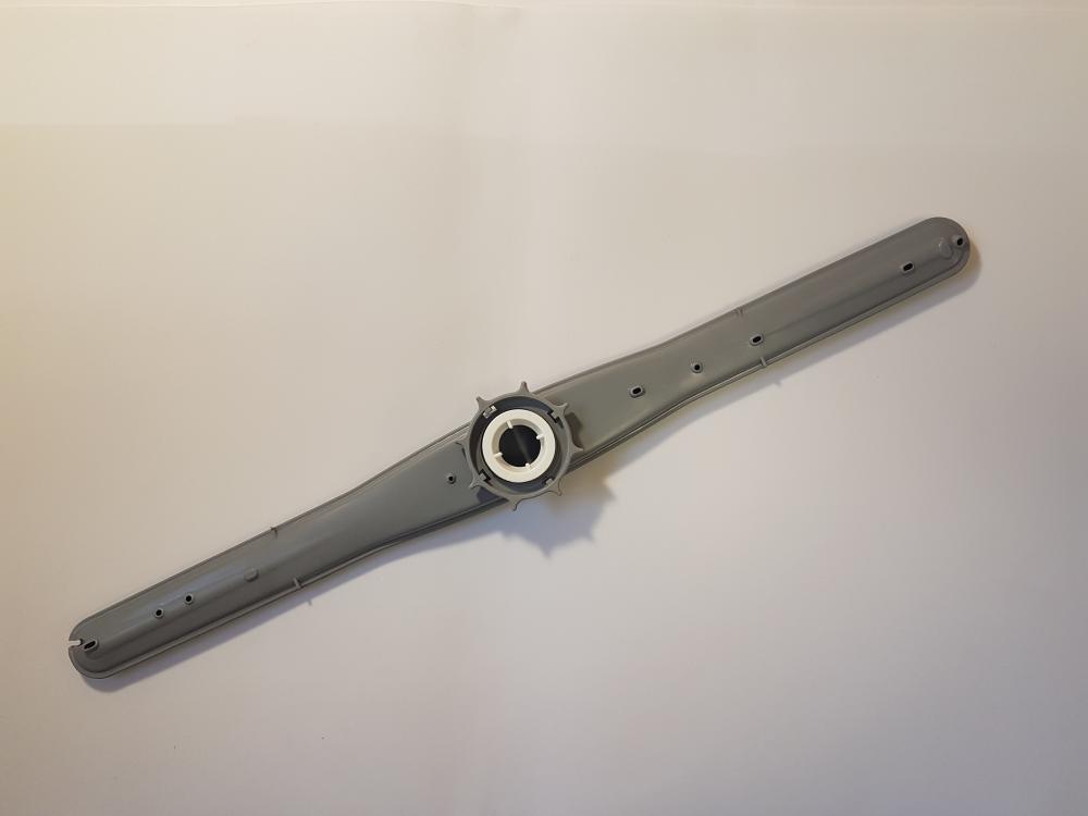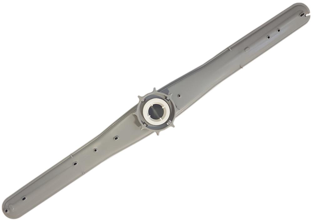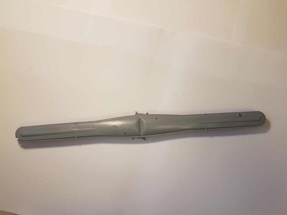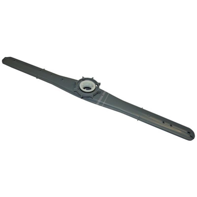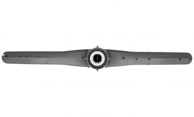 Brazo aspersor superior para lavavajillas. Componente alargado en color gris claro, con múltiples orificios repartidos a lo largo de la pieza para la salida del agua durante el ciclo de lavado. Corresponde al brazo rociador indicado en la información del producto.