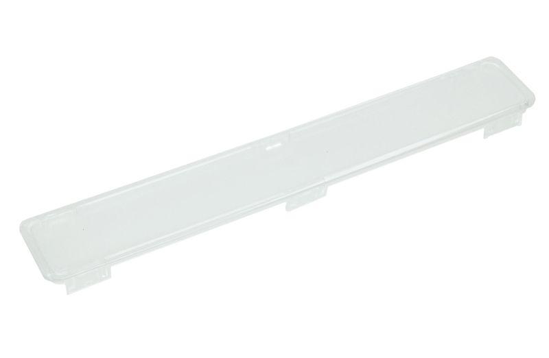 Recambio para campana extractora. Pieza correspondiente a la cubierta de la bombilla, creada para tapar y resguardar la zona de luz. Tiene un diseño alargado y un acabado transparente.
