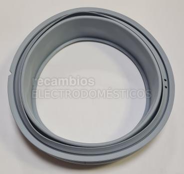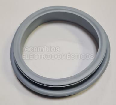 Junta de puerta para aparato de lavado. Corresponde a una goma de escotilla alternativa compatible con las referencias FAGOR L21D000A9 y L21B000A8. Presenta forma circular, color gris y varios pliegues en el borde interior, características propias de este tipo de cierre. Se utiliza como recambio de la junta de puerta.