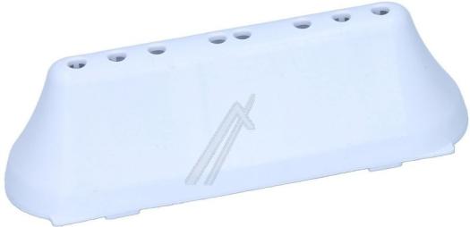 Aleta de tambor apta para lavadoras y secadoras. Cuenta con un diseño rectangular y alargado, con varios orificios redondos en la zona superior. Acabado en color blanco. Pieza destinada al interior del tambor del electrodoméstico.