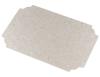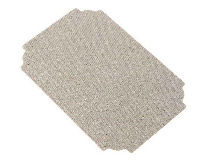 Es una lámina de mica para el interior del electrodoméstico, con diseño rectangular y muescas en las esquinas para su ajuste.