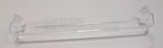 Estante de puerta para frigoríficos y congeladores. Diseñado para colocarse en la puerta y organizar envases u otros productos de uso frecuente. Fabricado en plástico transparente, permite ver el contenido con facilidad. Corresponde a la categoría de estantes de puerta.