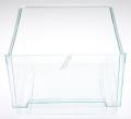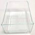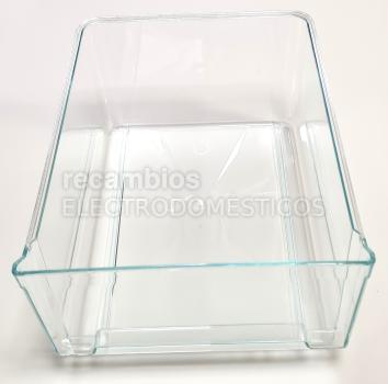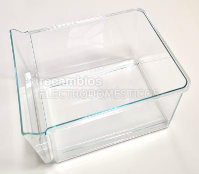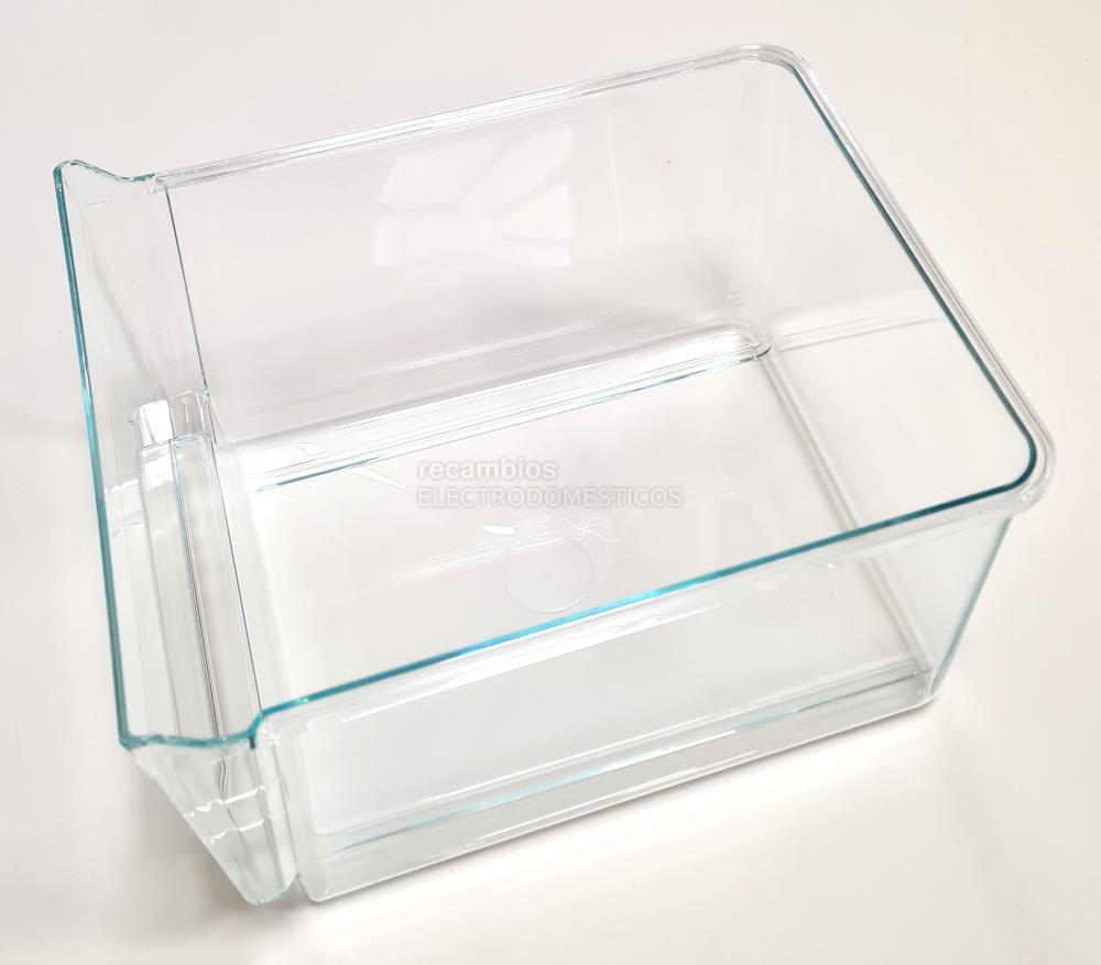 Cajón transparente de plástico para frutas y verduras.