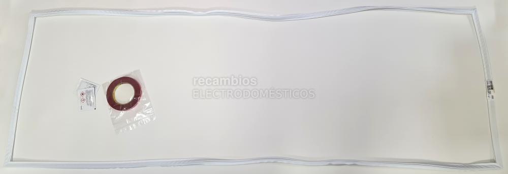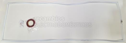 Junta de puerta original para frigorífico LIEBHERR, diseñada para garantizar el cierre hermético de la puerta. Se trata de un burlete magnético en forma de gran rectángulo plano con borde imantado que se ajusta al marco de la puerta. Incluye cinta adhesiva de doble cara ya incorporada en uno de los lados para facilitar su montaje, así como instrucciones de colocación. Sus medidas son 1700 mm x 564 mm. Antes de instalarla, se recomienda abrir y extender la junta durante un tiempo para que recupere su forma original.